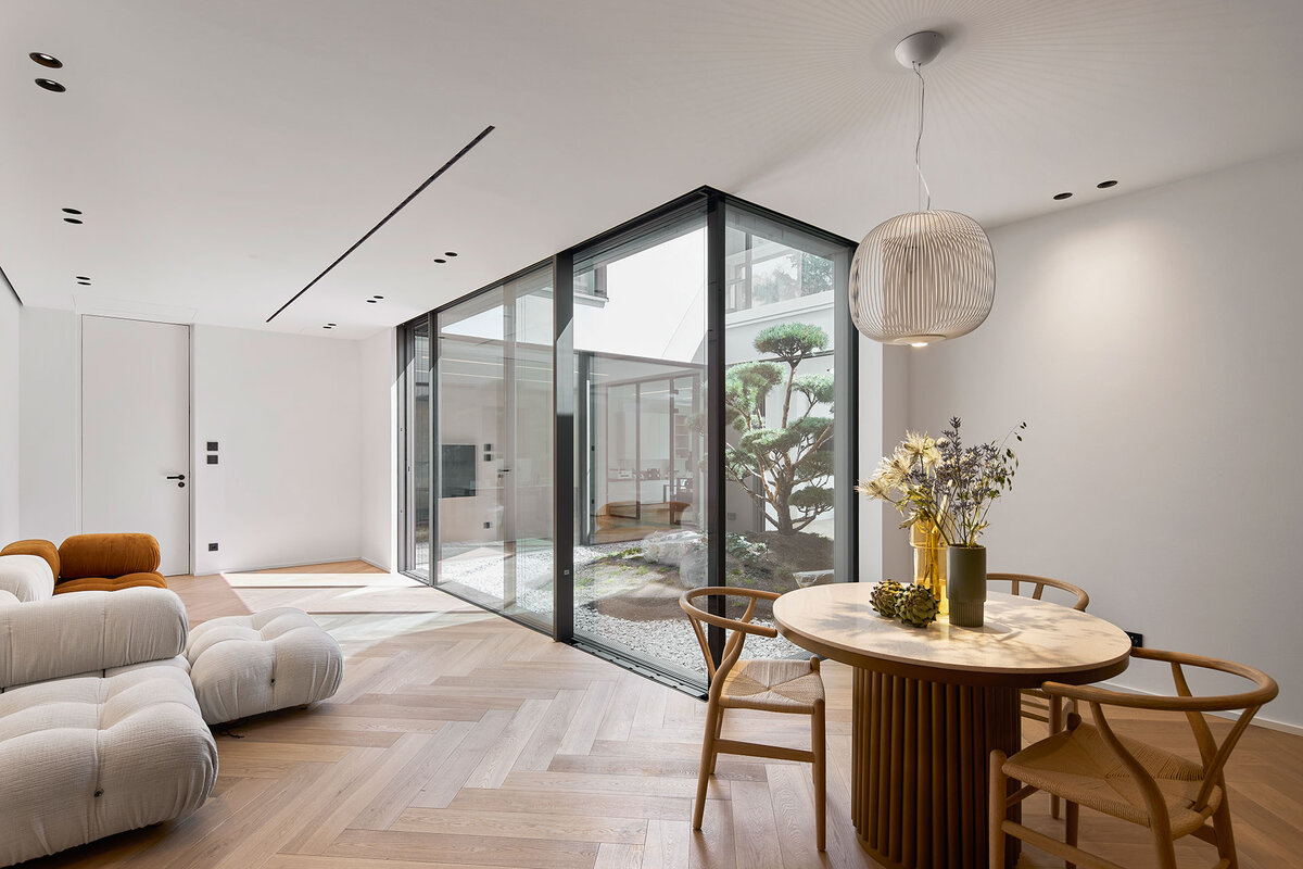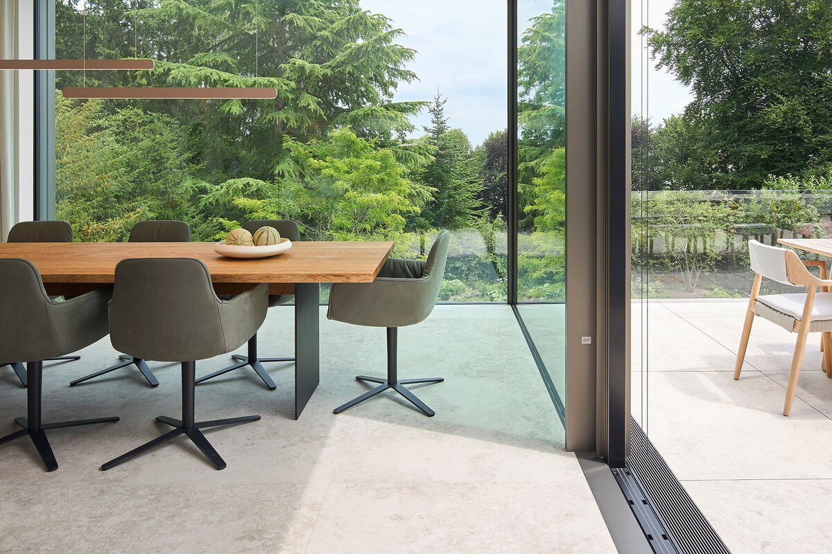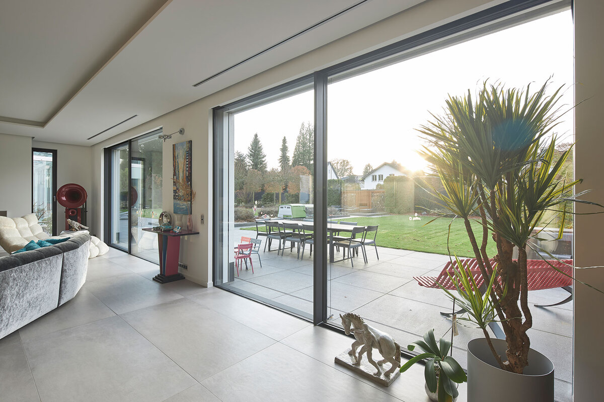 Minimalistische Profile, großzügige Glasflächen und fließende Übergänge schaffen maximale Transparenz und neue Freiräume im Wohnen.