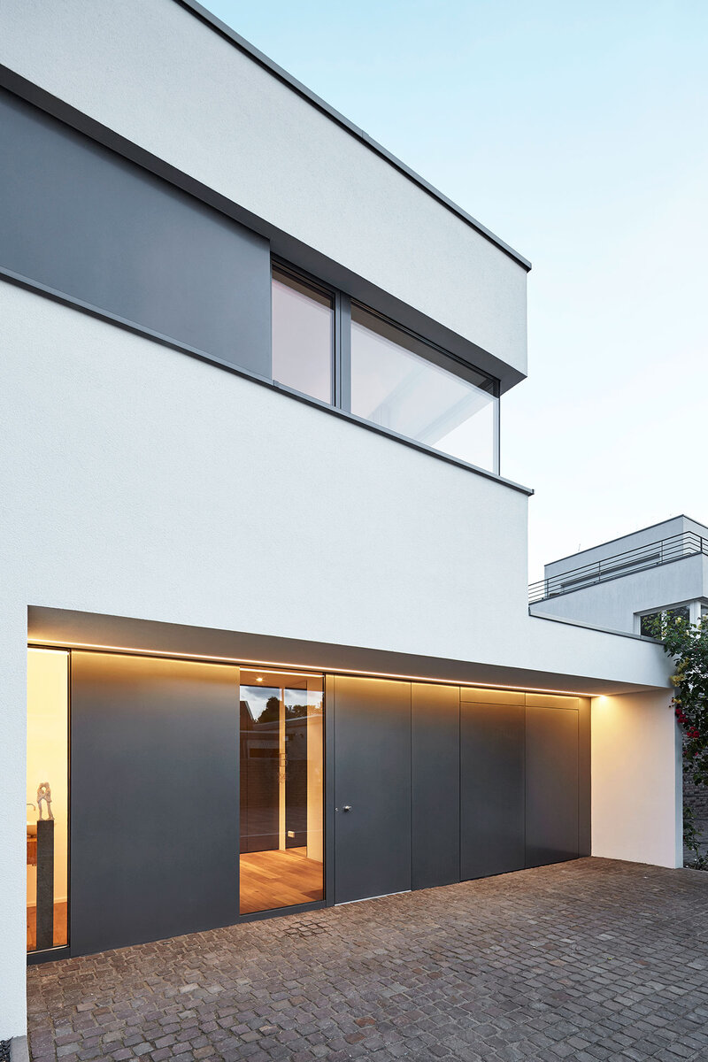 Villa mit Aluminiumfenstern und Design-Garagentor